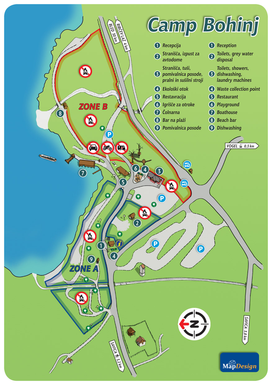 In the camp there are two green waste islands. One is next to the toilets and the other near the reception.