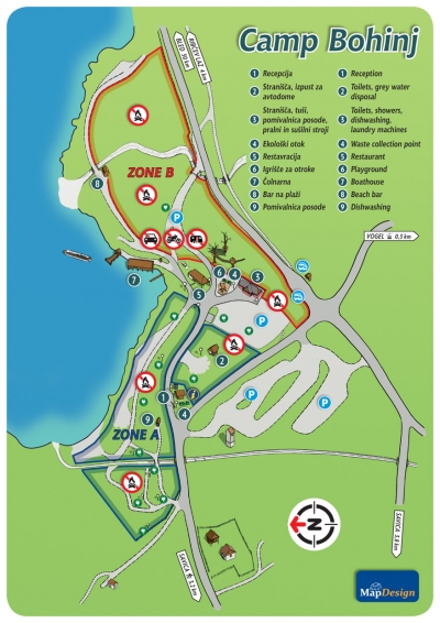 Kamp je velik približno 5 ha in je razdeljen na tri cone.